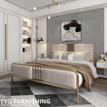 Cama de hierro de lujo con luz nórdica, cama de princesa, cama individual 1,5, cama Simple moderna con marco de hierro doble, cama de hierro dorado, 1,8 metros